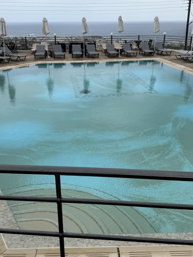 Imagine a man so furious with a skimmer net that you begin to wonder if it insulted his mother. George, ever the good host, was half banshee, half Olympic leaf blower. His Greek curses echoed off the wind, and frankly, if what I sneezed into a tissue is clogging his filtration system, I’d be furious too. This wasn’t just dust—it was the pulverised soul of a thousand sand dunes, and it was everywhere.