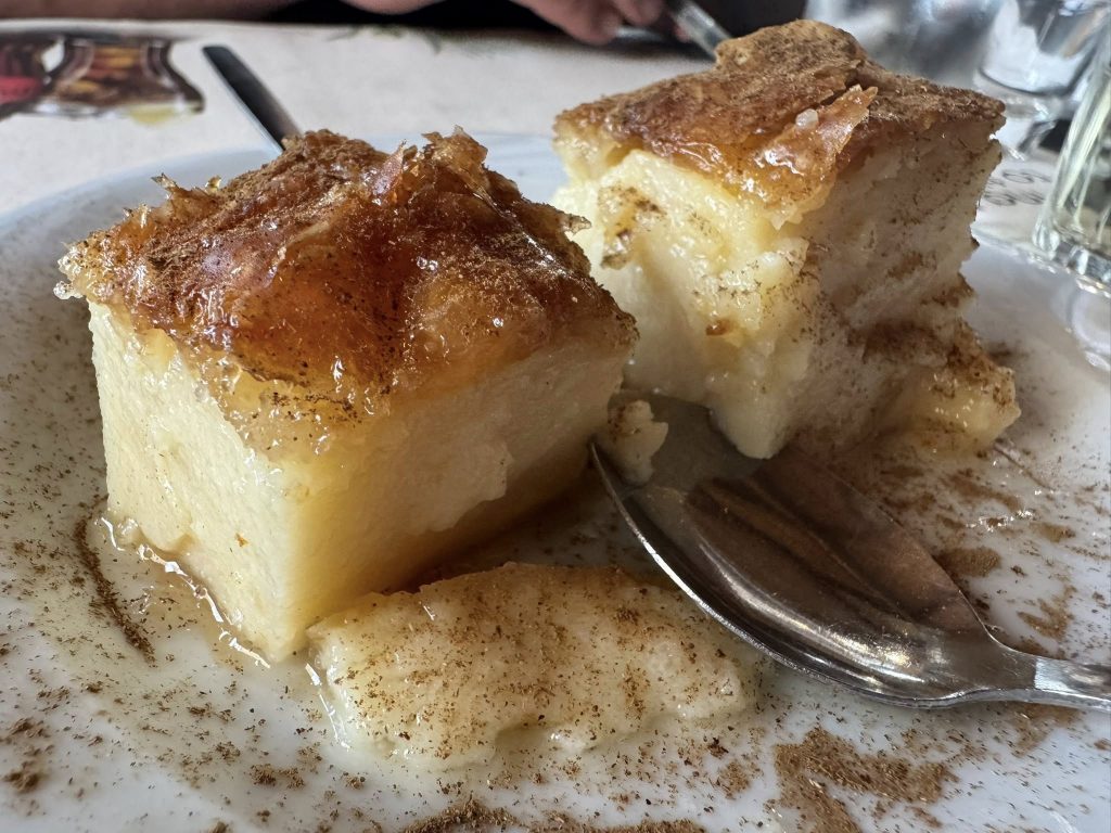 And dessert? Galaktoboureko. Phyllo layered over semolina custard, sticky with syrup and sin. Washed down with the holy ghost of the Cretan table: Raki. Clear, unforgiving, and mandatory.