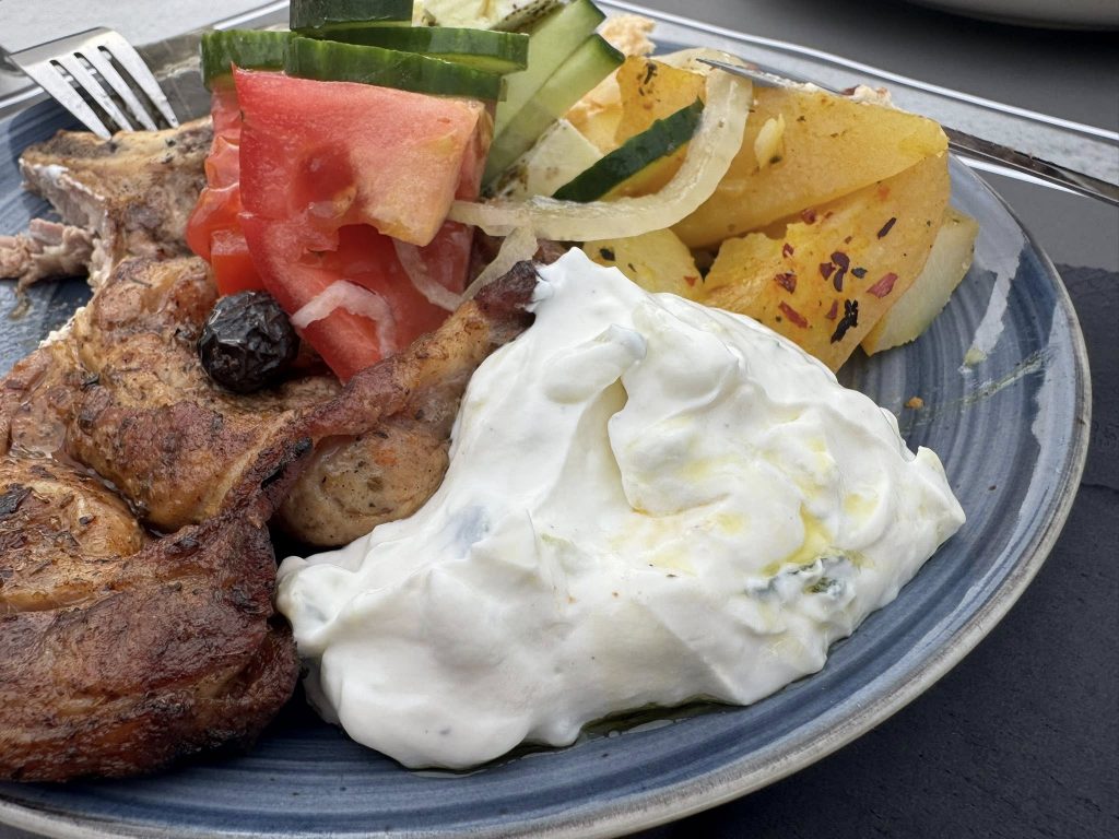 After our silent spiritual moment on Spinalonga, it was time for lunch. A lovely seaside taverna in Plaka, where we were served a perfectly respectable gyros and a bottle of water. But here’s the rub: we were told — multiple times — that if you wanted to sit down at the restaurant, you had to buy a drink. Totally fair. This wasn’t a picnic shelter. This was someone’s livelihood.