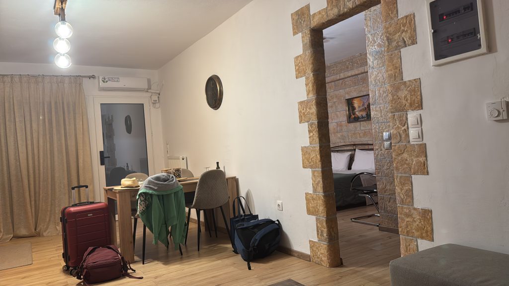 The descent into Crete? We thought we were going in. Wheels out. Cabin tense. Then — nope. Diverted to Athens like a bad Tinder date who gets stood up at the bar.