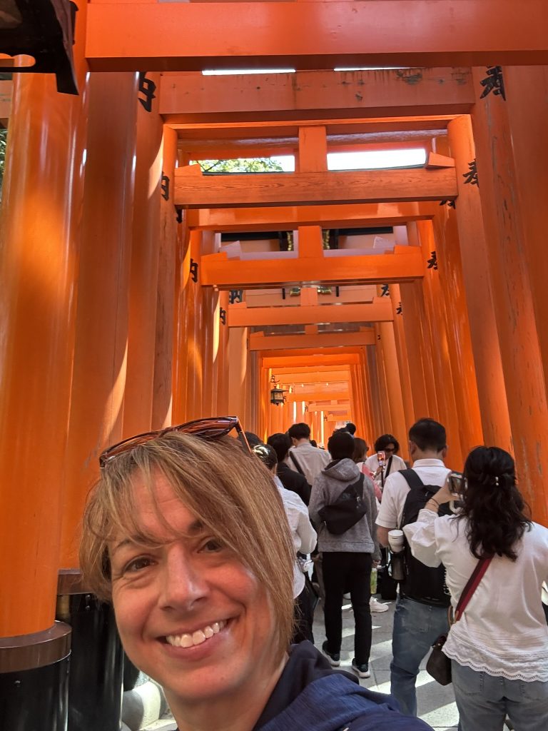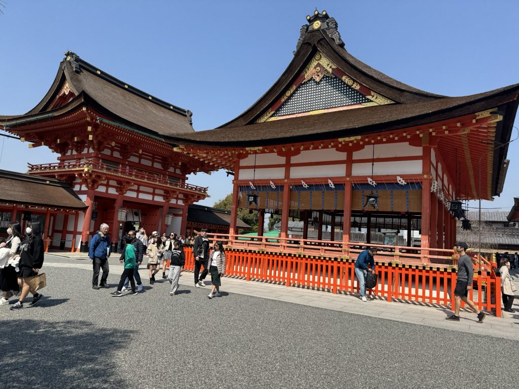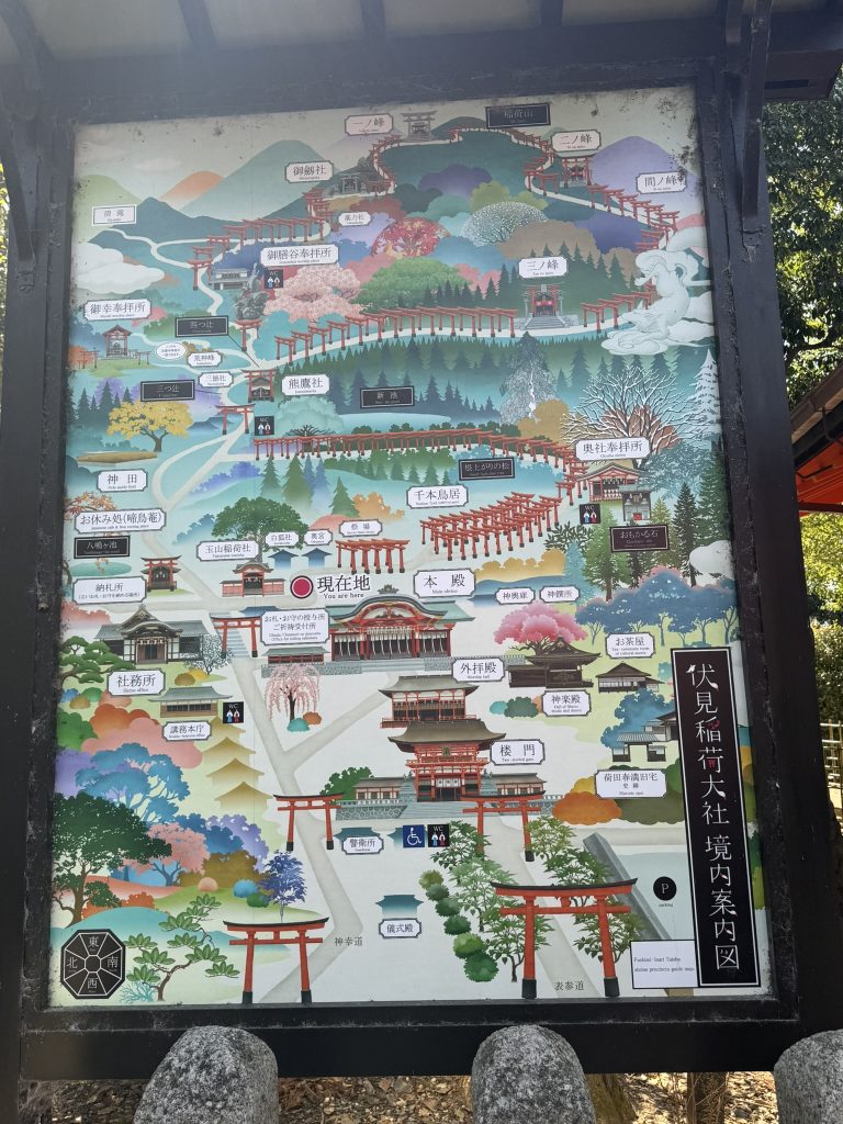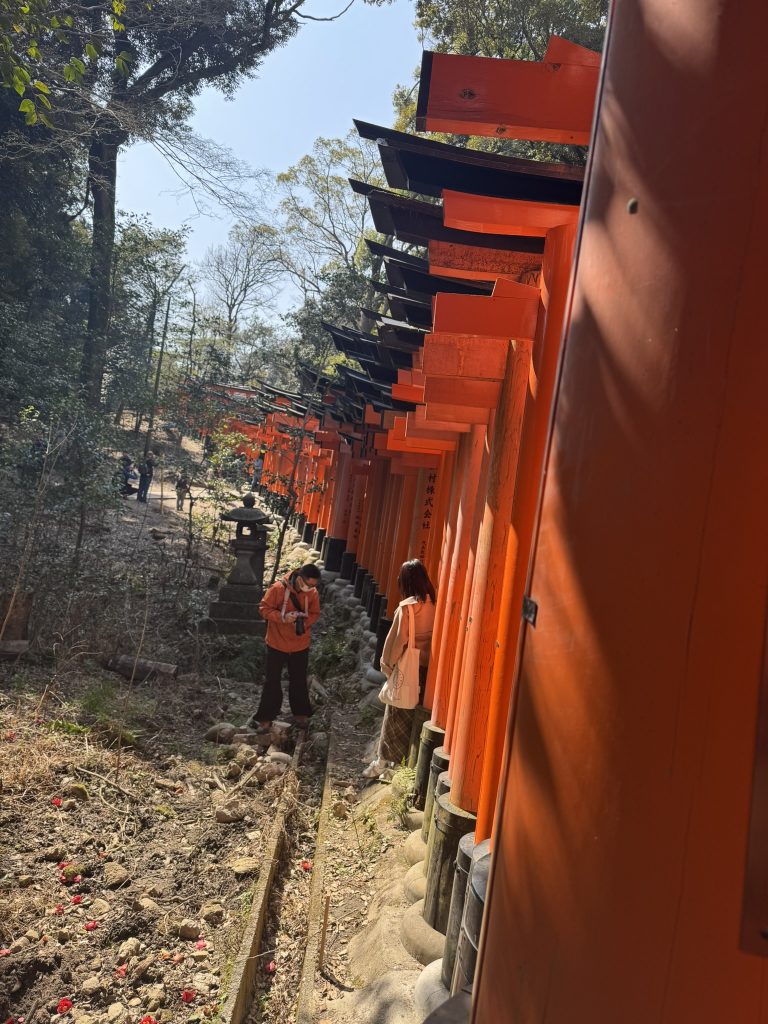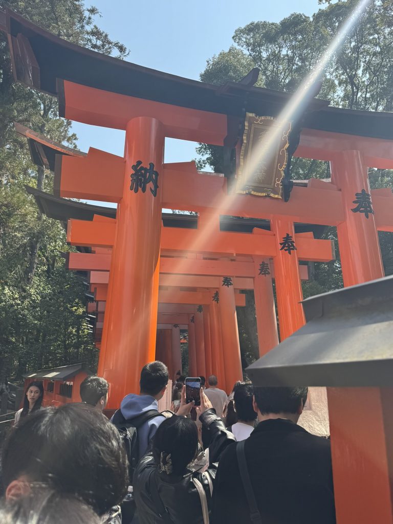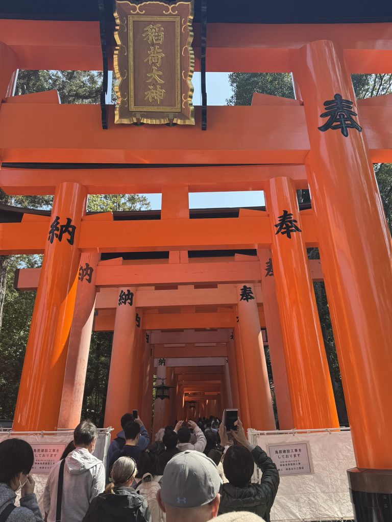 The shrine itself? Unreal. Thousands of red torii gates winding up the mountain, guarded by fox statues. It’s serene, breathtaking — and a leg workout that would make a personal trainer cry. Worth every step.