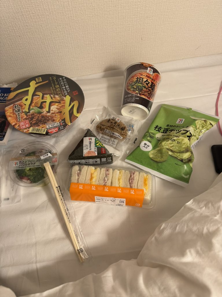 Dinner, Japanese 7-Eleven Style: Back at my capsule hotel, I’m too tired to live, let alone find a restaurant. Enter my new culinary guru: 7-Eleven. Spent ¥1600 (about £8) on a feast worthy of… well, someone too lazy to leave their pod.