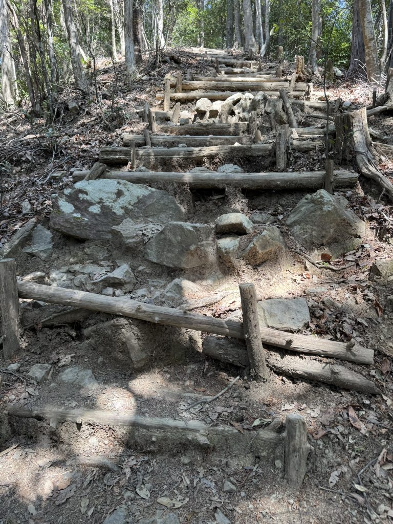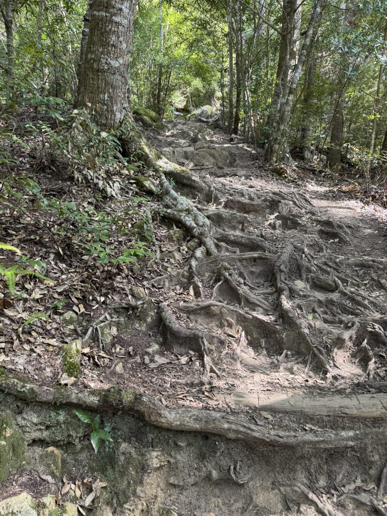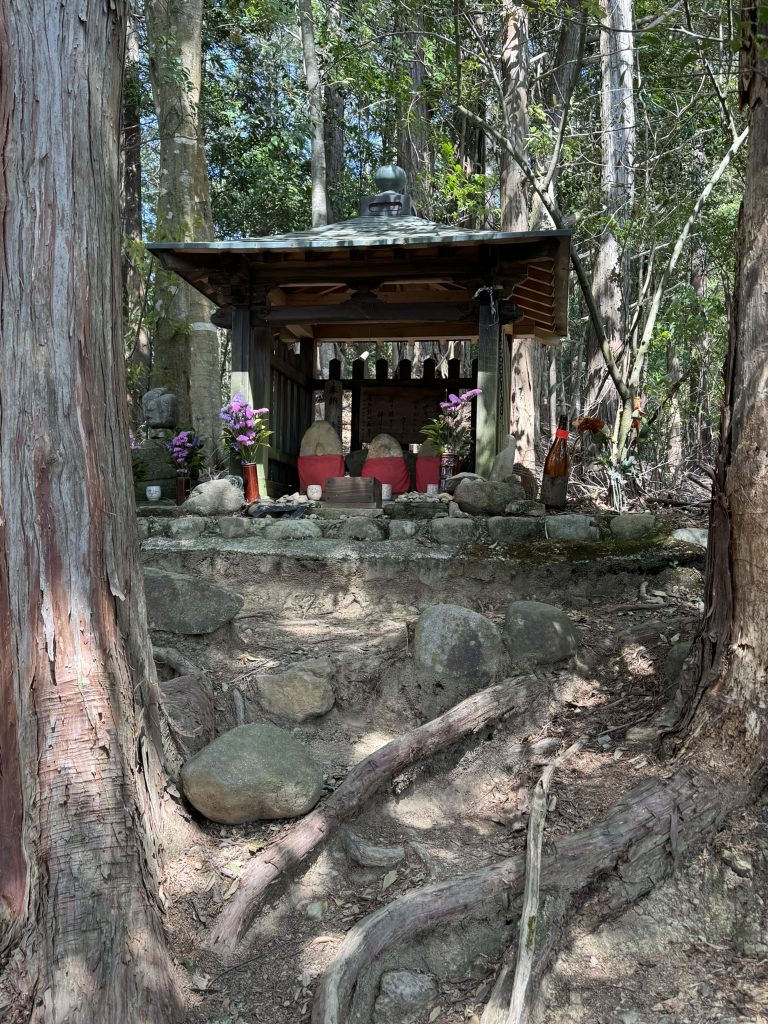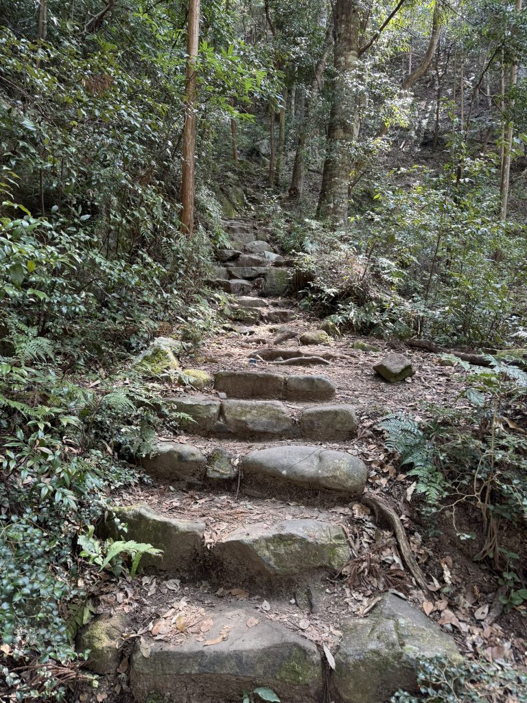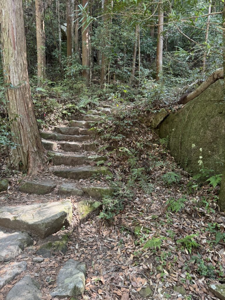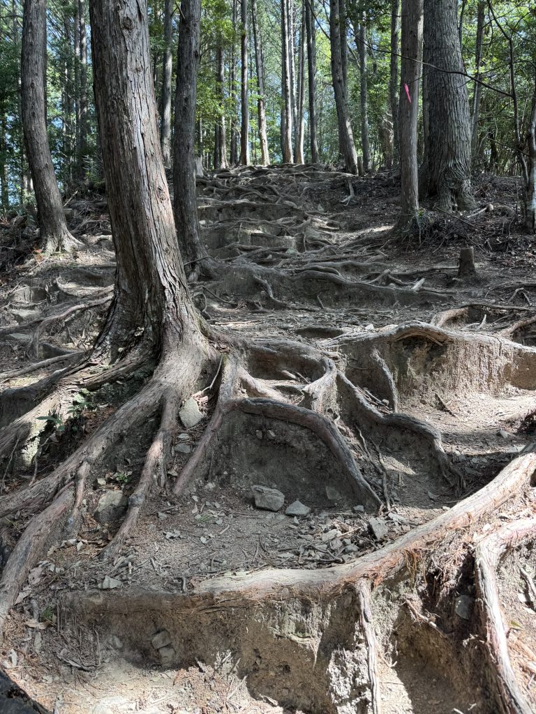 Kept trudging upward, fueled by the thought of my 7-Eleven tuna mayo onigiri. Finally reached the summit, took in the view, and remembered why people voluntarily do this sort of thing. It’s stunning. Shrines, tangled roots, ancient stones — like nature’s way of rewarding you for not dying.