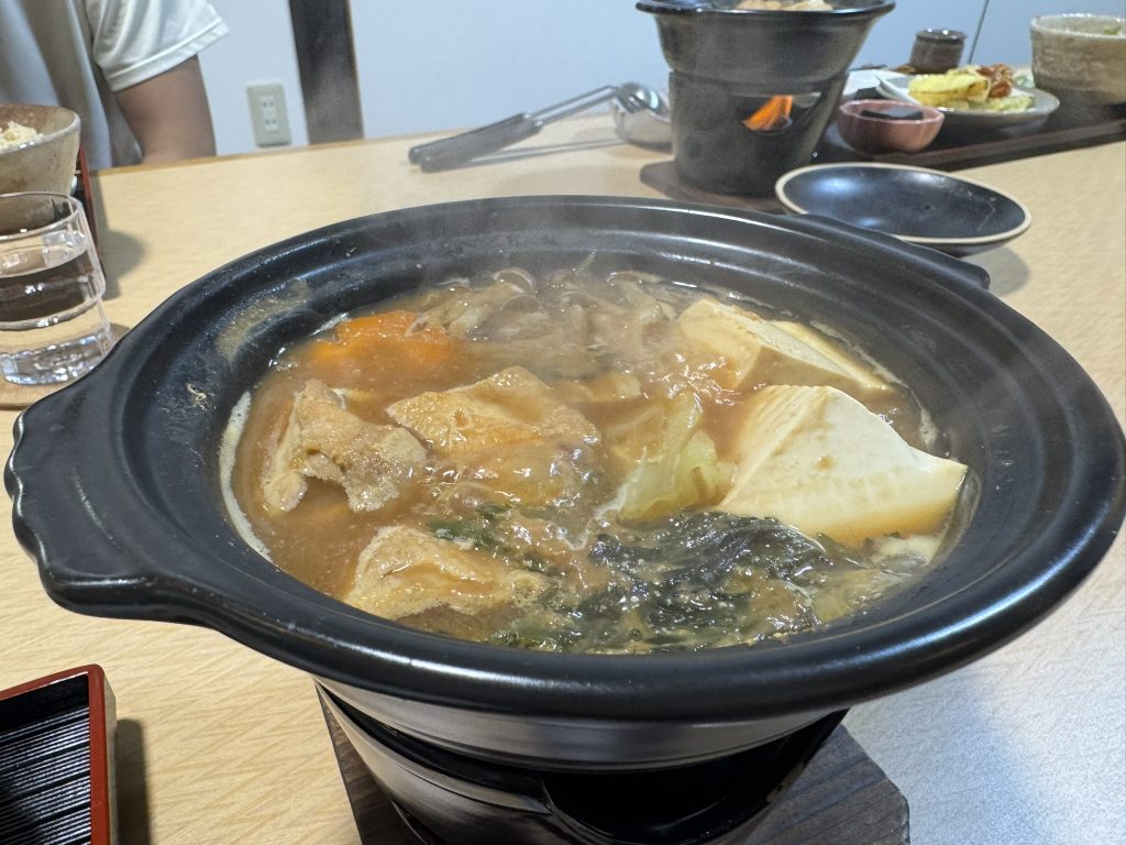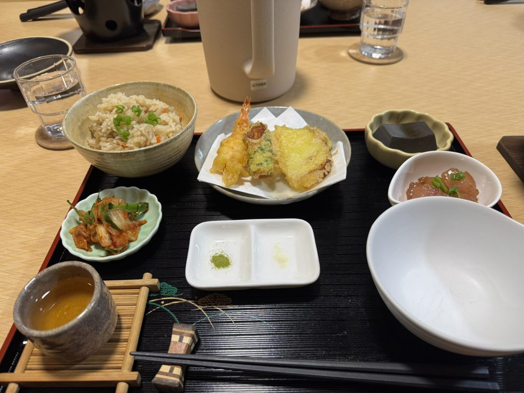 And then… dinner. My god. If yesterday’s meal was Michelin-starred, tonight’s was divine intervention. Brown rice with mushroom and chicken, black tofu, homemade kimchi, miso nabe with chicken, tuna sashimi, and the most insanely perfect tempura I have ever eaten. And then? Brown wine, flavored with Kisyu-Nankobat Ume liquor, aka the nectar of the gods. I need to steal that bottle. No one tell Aki.