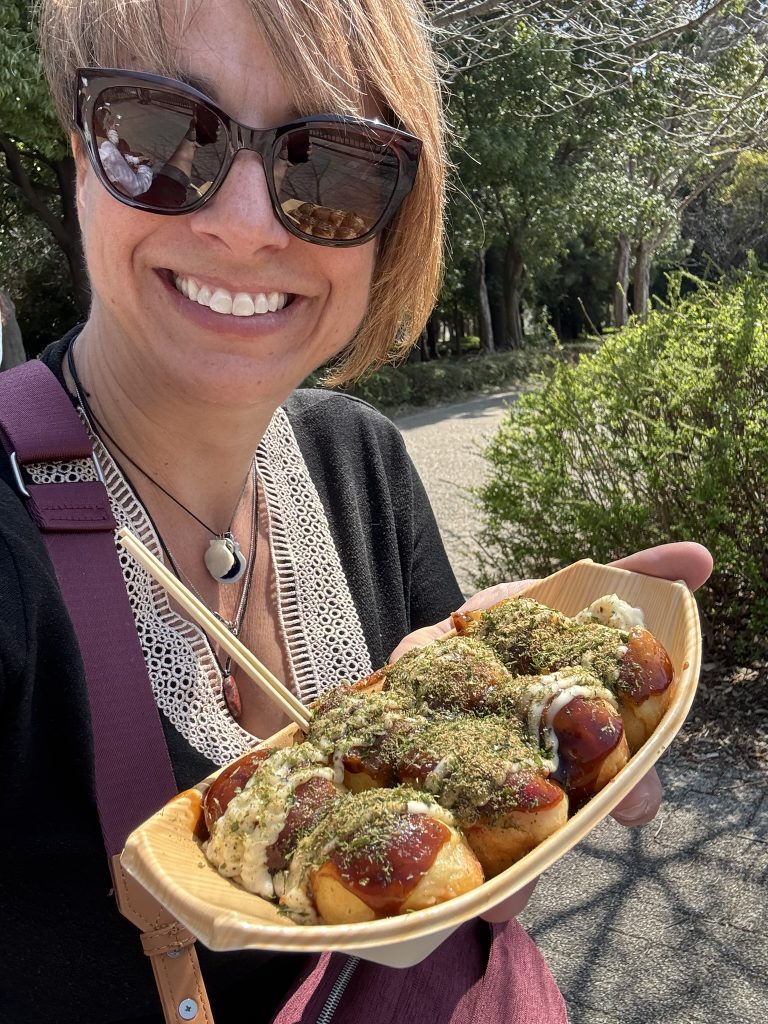 Lunch? Time for Takoyaki — the iconic octopus balls sold from street carts. Sadly, Osaka Castle’s vendor served up a disappointing batch of regret. Overcooked, chewy octopus encased in a lava-hot, runny blob that tasted like sadness and broken dreams. No crunch, no umami bomb. More like a gelatinous dare. I’ll give it another go in Dotonbori, where food has a reputation to uphold.