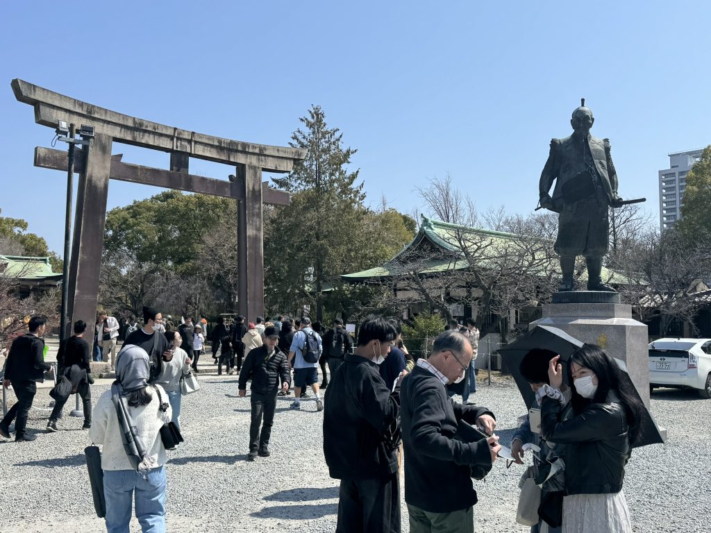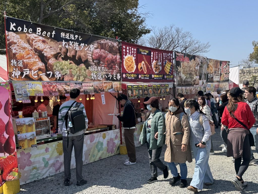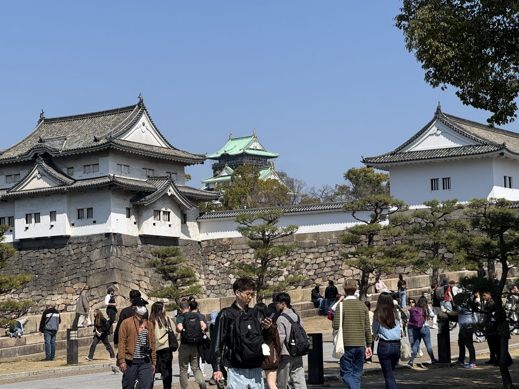 Next stop: Osaka Castle. Gorgeous. Majestic. Timeless. And… surrounded by tents. People are camping out like it’s the queue for Glastonbury, waiting for cherry blossoms that have yet to arrive. I’m about a week too early — nature’s way of saying, “Nice try, tourist.”