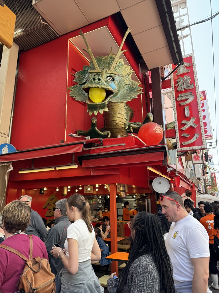 Settled in at Kinryu Ramen Dotonbori, under the massive 3D dragon sign. Creamy, rich, soul-repairing ramen. The kind of bowl that makes you question whether you’ve been living your life wrong up until this moment. Overheard a tour guide spilling some local ramen drama: